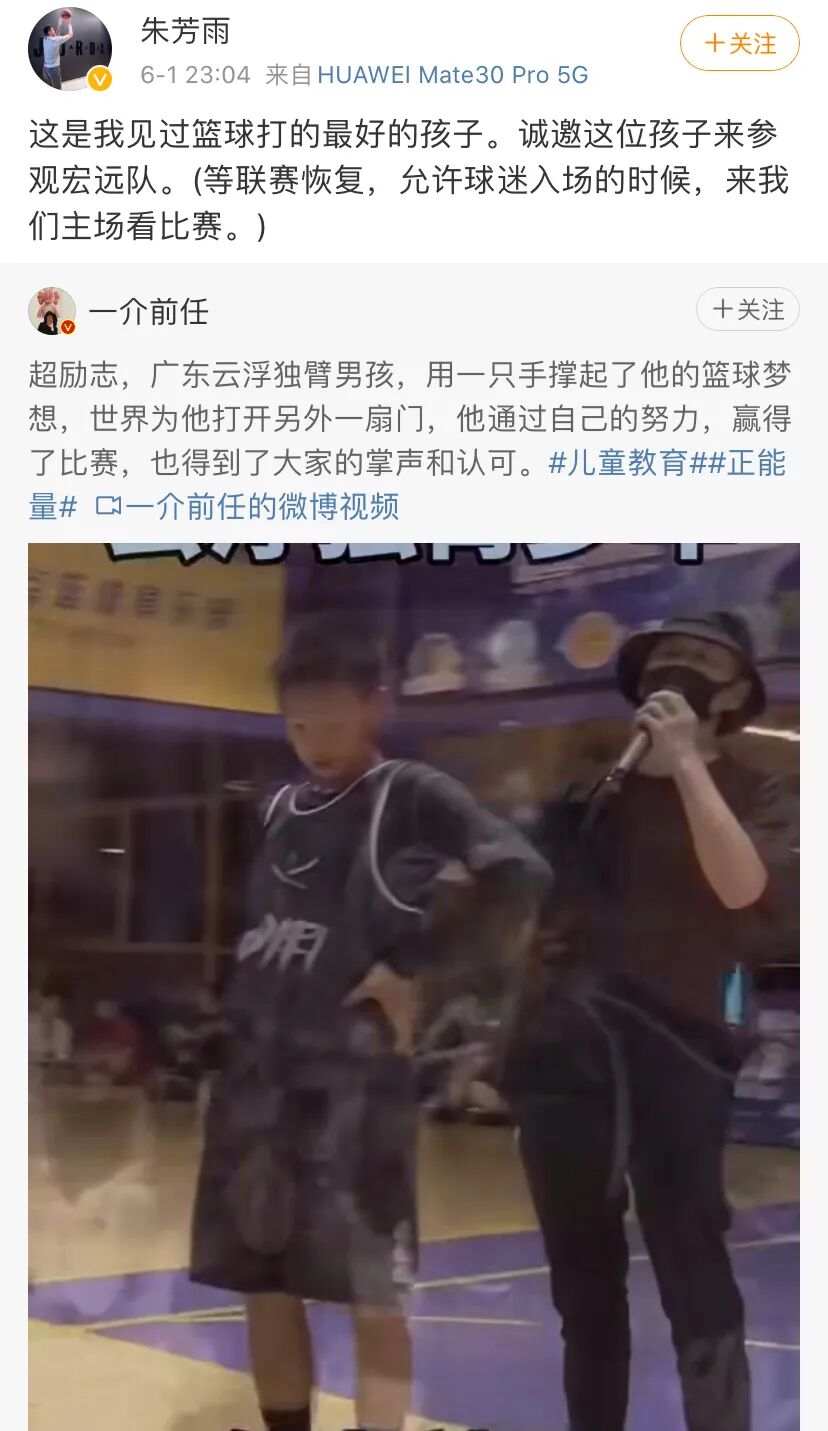 广东男篮总经理朱芳雨直接发出观赛邀请: