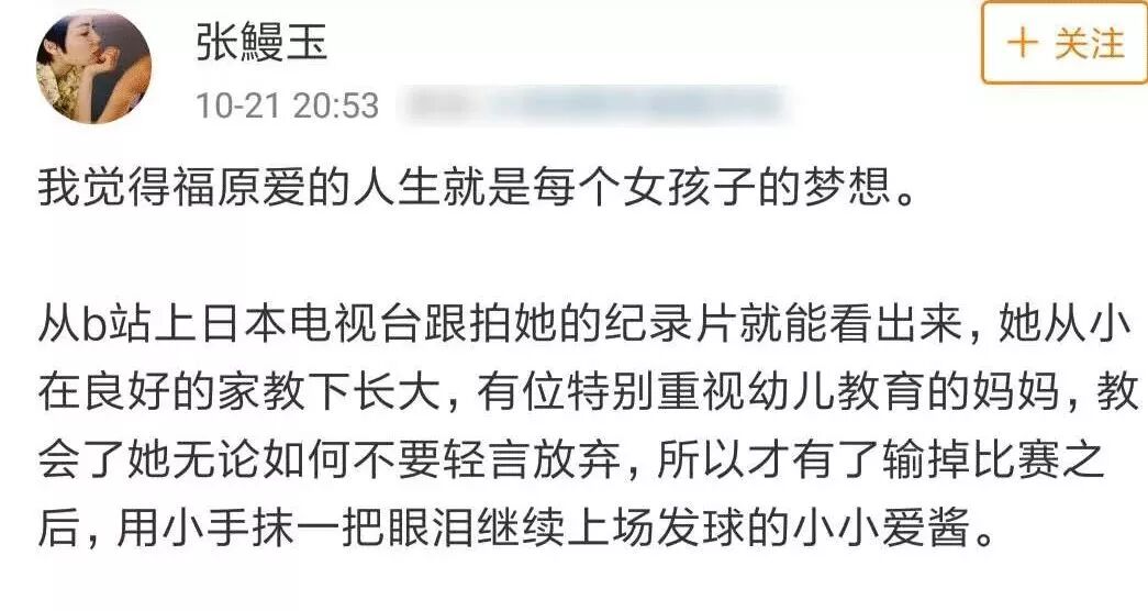 “因为是福原爱”被爱着,而非“因为是冠军福原爱”才被关注,天赋生来存在,而之所以有了后面的精彩,是因为这一场爱的故事。