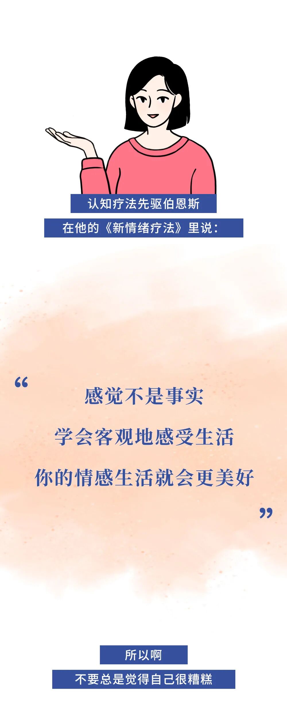 什么是爱自己?爱自己并不是仅限于给自己买很贵的包包,吃很好吃的东西。而是在自己难过的时候,有没有试着安慰过自己。在自己需要奖赏和鼓励的时候,有没有给自己加油。当你高兴的时候,你觉得你是在爱自己,那当你难过伤心的时候,你有没有接纳过那样的自己?