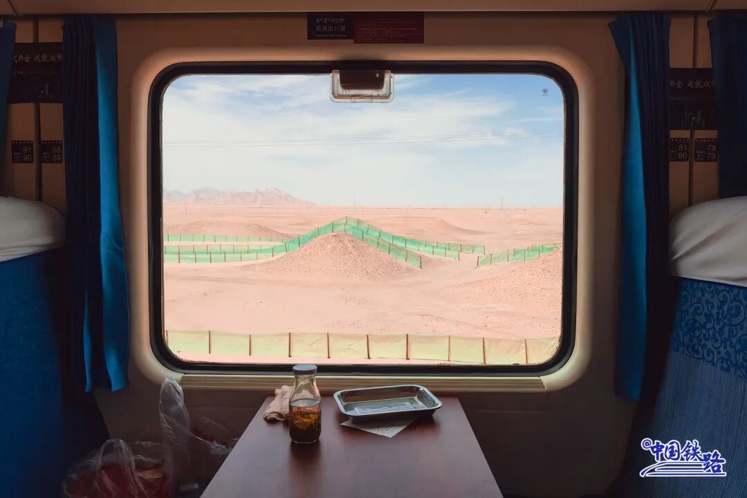简介:沿途能看到阻沙坝和防沙网,一道道保护铁路运输的防线成为沙漠中的独特风景。