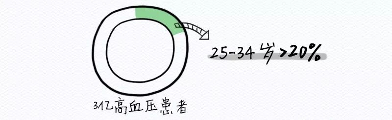 据2017年的中国高血压年会调查数据显示,目前中国已有3亿左右的高血压患者,其中,25岁至34岁的年轻男性中高血压患病率已经超过20%。