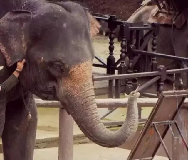 小象在学习画画时,需要先花一个月的时间来学习如何把刷子夹在鼻子上。