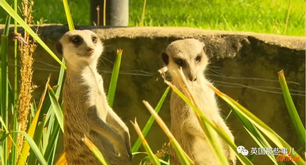 猫鼬们怂萌怂萌的,明明怕得尾巴直立,还要跟着它一路走。