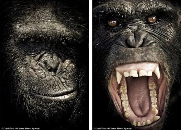 他惊讶于猩猩深褐色眼睛中蕴含的情感,有的猩猩愤怒,有的显得得意而大局在握。