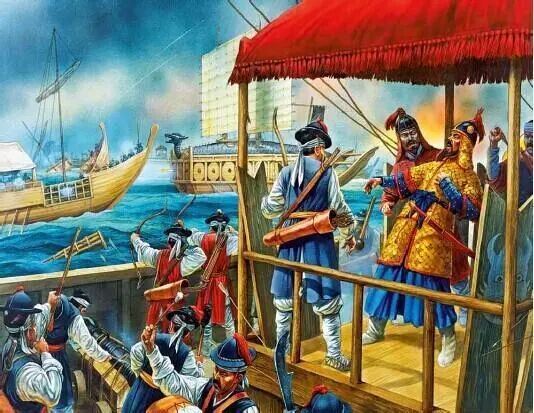 而在万历朝鲜战争的最后一仗:露梁海大战,更是明朝“火箭”的巅峰杰作:面对困兽犹斗的数万日本舰队,完成合围的大明水师动用了二级火箭“火龙出水”,密集的“火箭”直扑日本舰队,露梁海面上顿时“烟焰涨天,海水尽赤”,数万凶残倭寇在烈火中哀嚎,直至化为灰烬,“倭尸及败船木板兵器蔽海而下,水为之不流”。除了几十艘小船仓皇逃生外,数百艘日本战舰沉入海底。16世纪日本“梦日而生”的侵略野心,就这样被烧个精光。