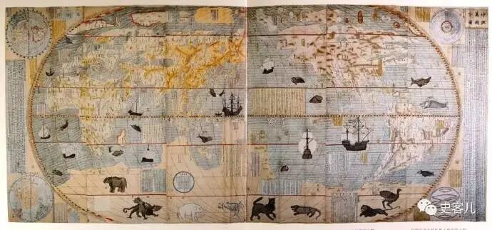 1608年,利玛窦的《坤舆万国全图》由宫廷艺人摹绘12份,其中之一本现藏于南京博物院。