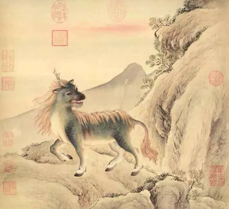 麒麟是古代传说中的一种瑞兽,其状如鹿,独角,角端有肉,全身生鳞甲,牛尾、马足,黄色圆蹄,十分罕见。历史上麒麟见于史书的明确记载有两次。