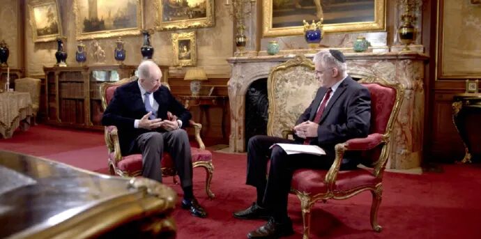 在获奖后,前以色列大使丹尼尔·陶布主持了雅各布·罗斯柴尔德勋爵的访谈。