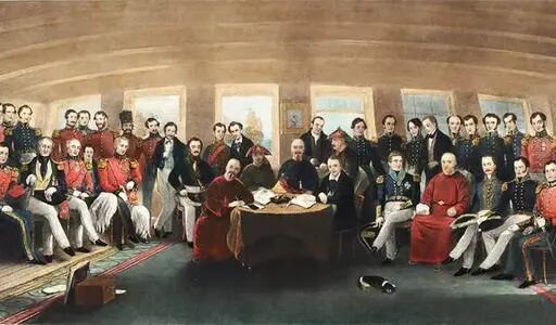 1842年8月29日(道光二十二年七月二十四日),清朝政府钦差大臣耆英、伊里布与英国女王代表璞鼎查(优泰人)在停泊于南京下关江面的英国军舰“华丽号”上签署清朝作为战败国的屈辱性条约《南京条约》。