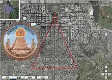 (华盛顿哥伦比亚特区)起初叫“联邦城”,是华盛顿在1791年4月13日在一封信中这么称呼的;但督造这座城市的委员会聘请了一位法国建筑师郎方来设计图纸;建筑师皮埃尔·查尔斯·朗方是一名共济会会员。他把共济会的代表性符号放进了华盛顿特区中心街道的布局中。