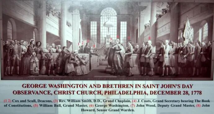 华盛顿为出席这次活动穿上了共济会围裙、佩戴了共济会徽章。没有哪一次华盛顿的活动比这一次更有历史意义,然而,在美国的历史书上却找不到归属于它的一页。这是他第一次成为所有人关注的中心,以一名兄弟的身份向共济会致以敬意,在共济会最高规格的庆典上被同伴们认可,宣示共济会制度值得全国人民的信任尊重。