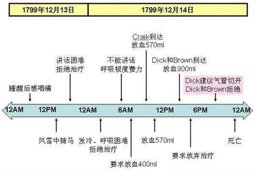 分析一下华盛顿死亡当日和前一日的医疗档案,可以排列出一个时间表:
