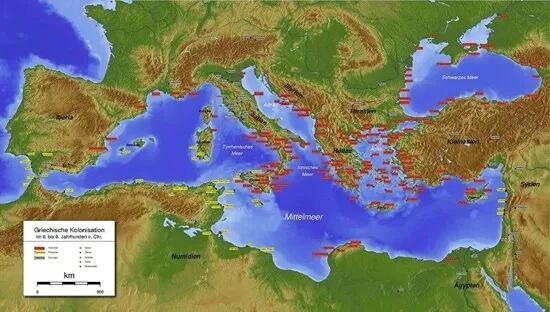 据称距今三千年前雅典城邦为中心建立的遍布地中海沿岸的希腊商业殖民地,横跨欧亚非三大洲。