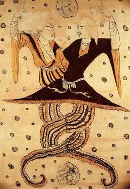 《列子·黄帝》:伏羲氏女娲氏……人首蛇身。