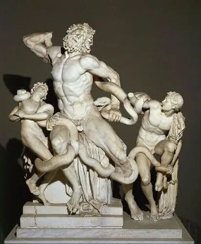拉奥孔(The Laocoon and his Sons),大理石群雕,高约184厘米,是希腊化时期的雕塑名作。过去被认为是希腊人阿格桑德罗斯等创作于约公元前1世纪中叶,现收藏于罗马梵帝冈美术馆。据称雕像1506年在意大利罗马出土,曾经轰动一时。