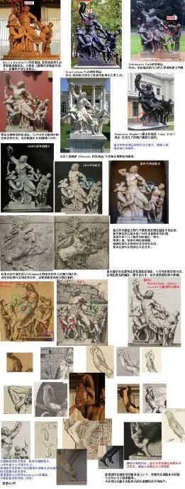 而众多版本的拉奥孔绘图中,很多细节的位置明显是靠想象绘制的,与实物差距是很大的。
