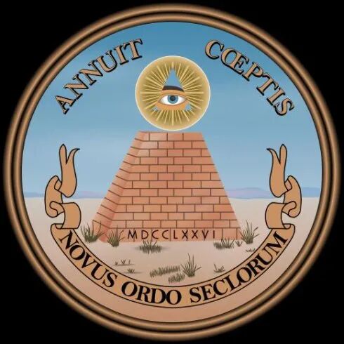 共济会的特有标志:光照神眼与通天塔的标志图像,印制在美元上: