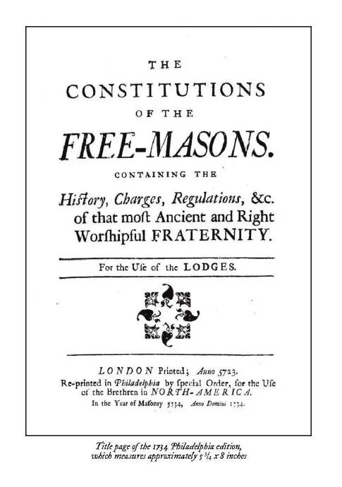 这个文件在1734年由本杰明·富兰克林在费城付梓,出版了美国版梅森宪章。富兰克林和华盛顿都是梅森的导师和教父。富兰克林号召美利坚殖民地的共济会员团结起来效仿《旧约》(以色列人在共济会大师摩西的带领下出埃及后建立了一个石匠王国)和新教精神,推行政治平等、博爱的道德理念,营造一个新乐土——这就是后来美国独立宣言的理想愿景。