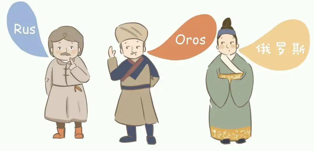 须知历史上我国和俄国人从不搭界,中间隔着说乌拉尔语系和阿尔泰语系语言的许多民族,特别是隔着地域活动范围广大的蒙古人。蒙语由于自身的特点,每遇以辅音r起首的词(不论发这个r音时舌部震颤与否),为便于发音,必须把它后面紧跟的元音先移前重复一次。Pиcb,Poccия和Pyc-cия中正好有这个r音,于是就把它读成Oroso。