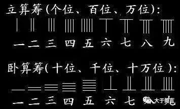 以上为祘筹的实数,后来有以空筹码占位表示进位。