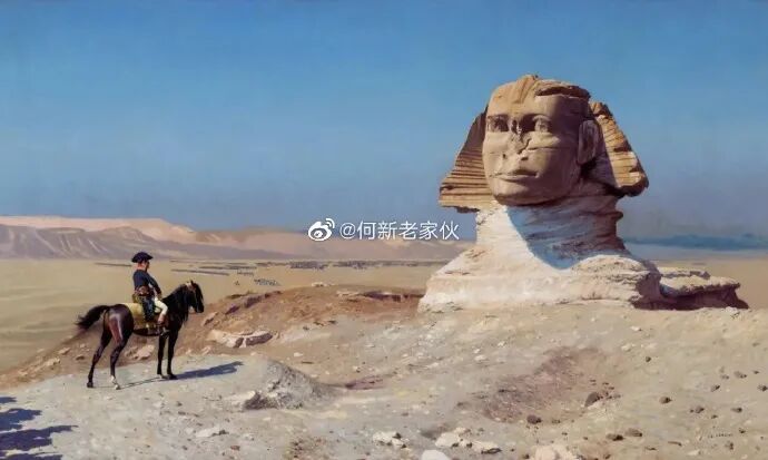 图:法国东方画家杰罗姆绘画的狮身人面像,作于1848,还没有混凝土块的身体
