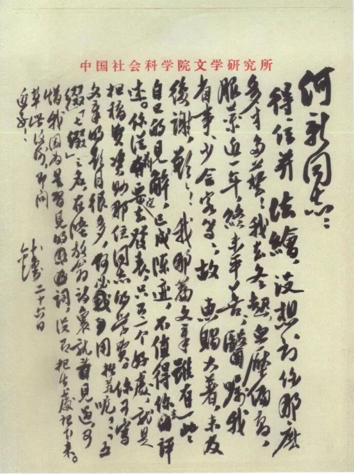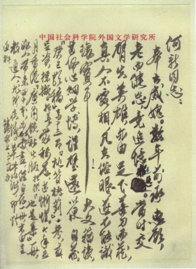 上周得惠示大稿,匆讀一過,極啟發心思。以無可參末議者,而拙著《圍城》將第四次重印,急於校訂錯漏字,遂未作復為歉。頃奉手書,知遠出方歸,想極賢勞。尊稿似已付手民,故未將校樣寄回;如仍需要,當掛號付郵耳。草復即頌