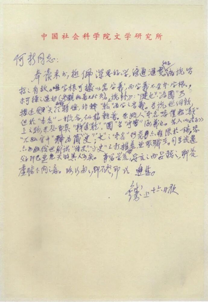 *指《管錐編》。此信所論乃指何新考據二篇:“釋乾坤”、“釋史”。收入《諸神的起源》一書(第一版,三聯,1986)附錄。