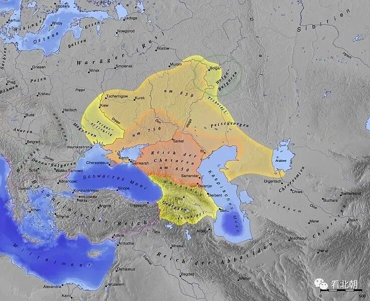 ▲公元650-850年的可萨汗国势力范围,图/wikipedia。