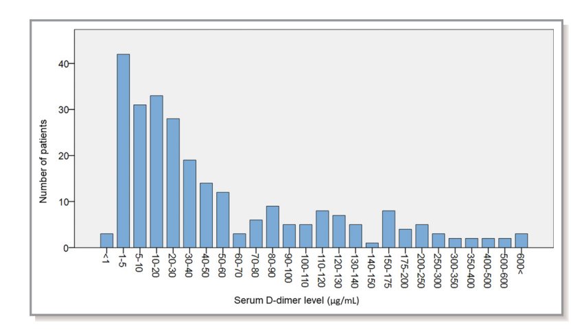图2 主动脉夹层患者入院D-二聚体浓度统计