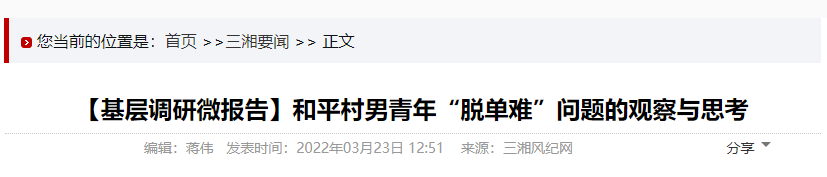 比如“同病相怜”的湖南湘西州某村。有调研报告发现,该村419户,适龄未婚男青年110人,适龄未婚女青年仅31人,几乎每3个家庭就有一个适龄未婚男青年。
