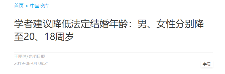 有学者建议,要降低法定结婚年龄,男性降至20岁,女性降至18岁。