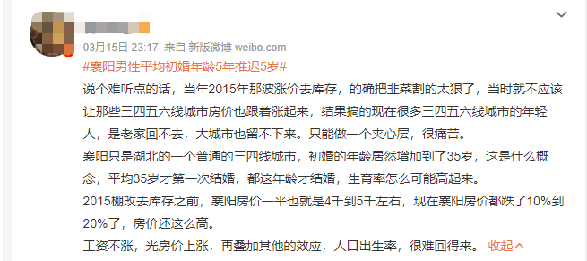 而且在低层级城市当中,这种推迟还要更加的严重。