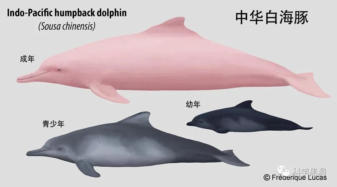 中华白海豚在不同的阶段它们身体颜色是会发生变化的,刚出生的时候它们身体灰色偏黑,随着逐渐地生长在8个月以后,身体颜色逐渐变浅成浅灰色,开始出现白色的斑点斑纹,到了青年期斑点会逐渐减少灰色白色范围越来越大,要变成名副其实的中华白海豚。