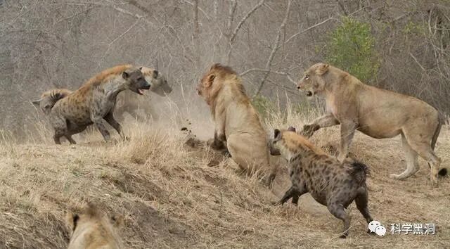 有科学家曾做过统计,当雄狮在狮群的时候它们也会去抢夺鬣狗的猎物,并且相比起来次数并不比被斑鬣狗抢夺的次数少。实际从这个角度来看,狮子和斑鬣狗是竞争关系,同时相互抢夺猎物也算是有利可图,彻底的把一方消灭也并不现实。