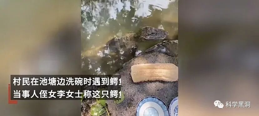 近日,安徽宣城有村民在池塘边上洗碗,忽然在池塘边上发现一只围观的鳄鱼,正常情况下一般人都会非常恐惧,毕竟这种原始的爬行动物还是非常凶猛的。