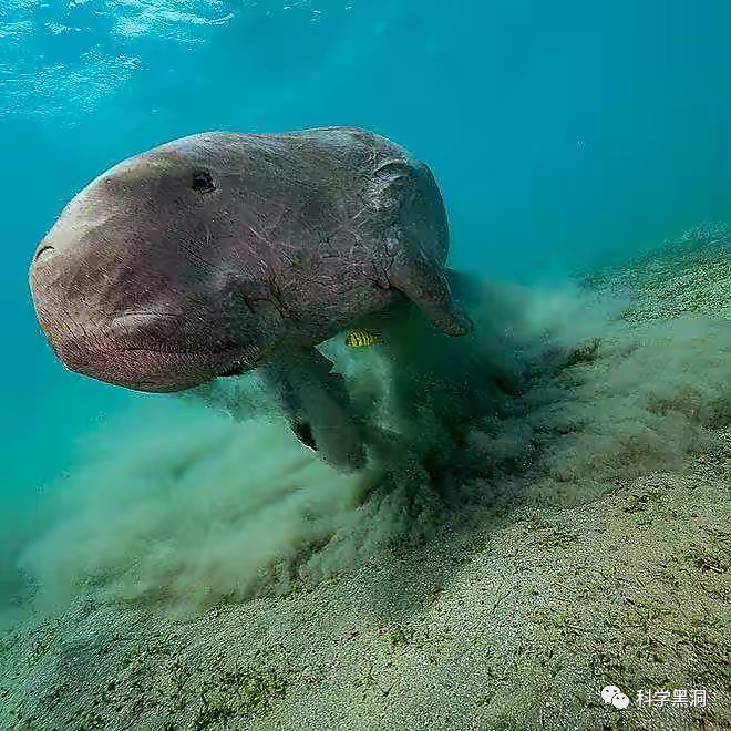 它是生活在海洋中的哺乳动物,同时也是完全素食的生物,以二药藻、喜盐草等水生植物为食物,它们主要栖息在浅水区,作为哺乳动物需要时常浮出海面进行呼吸换气。儒艮是一种非常温和的海洋生物,它们行动缓慢,大部分时间都是趴在海底“干饭”,一身皮肉非常厚实,看上去憨憨的非常可爱。