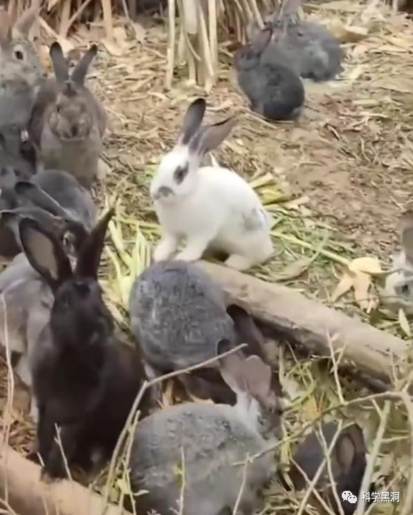 从画面中我们可以看见这些兔子颜色各异,有白色、黑色和灰色,同时大小自然也不同,它们都是最开始3只被捡来兔子的后代,不得不说兔子的繁殖速度有点快。
