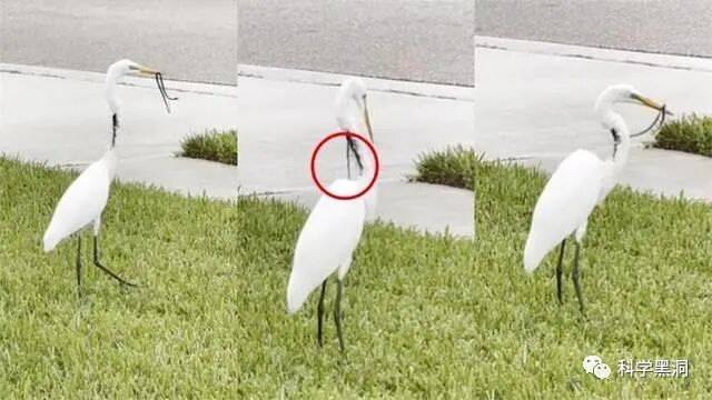 真正令人恐惧的是,这只白鹭貌似完全没有受伤,相反正在享受着吞蛇的过程,一遍又一遍。