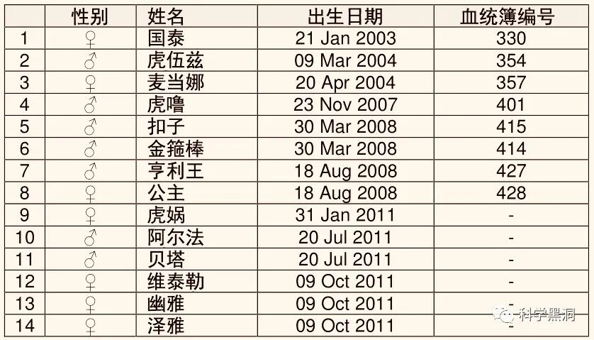 这两只雄虎和两只雌虎是全莉老虎谷的第一代成员,但是因为雄虎“希望”夭折,2005年的时候全莉从苏州动物园找到了成年的雄虎“327”用来替代“希望”。老虎谷的第一代华南虎通过不断的交配繁衍,到2012年老虎谷里已经有了14只华南虎,这个时候“希望”和“327”早都已经死亡了。