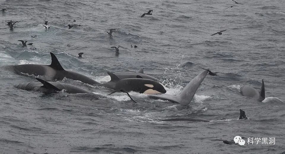 当虎鲸面对攻击性极强的大白鲨,它们可以把鲨鱼掀翻,让它们自己进入僵直状态,之后就可以大快朵颐了,而面对躲藏在浮冰上的海豹,虎鲸可以并驾齐驱嫌弃海浪,把海豹打入水中,同时面对体型巨大的须鲸,虎鲸可以通过自身的体重让须鲸溺水而亡。