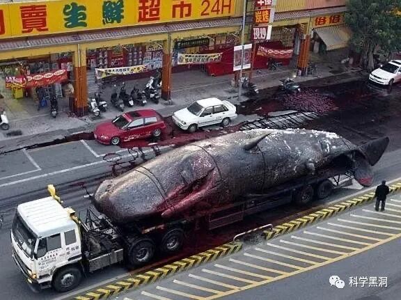 2004年在我国台湾省台南市就发生过一场鲸鱼爆炸事件,一条长17米重达5吨的抹香鲸,被大货车拉着从市中心驶过,这个场景是很多人从来没有看到过的,纷纷驻足道路两边观看,谁知一声巨响紧接着就是血肉内脏飞溅,附近的人们以及车辆都被波及。