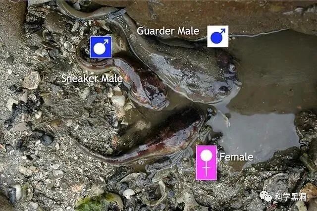 但是斑光蟾鱼有两种雄鱼,一种体型比雌鱼大,另外一种体型比雌鱼小,如果从体型上来竞争,那种小的雄鱼是完全没有任何优势,那它们该如何繁衍自己的后代?