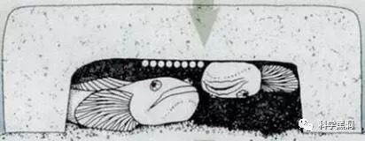 这个时候雄性斑光蟾鱼(小)就要出场了,它们有的时候会偷偷溜进求偶室,之后排出精细胞后迅速的就逃离现场,有的时候正大光明进入求偶室,它们会被当成雌性的斑光蟾鱼,还会受到热烈的欢迎。当然体型差毕竟摆在那里,如果被发现了免不了一顿K,有些聪明的雄性斑光蟾鱼(小)会把精细胞产在房外,之后用尾巴把这些精细胞扇进洞内和卵细胞结合。