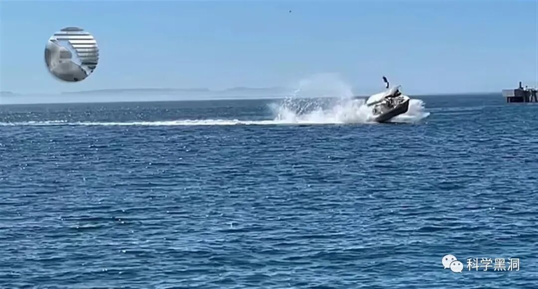 整个过程惊险刺激并且令人不可思议,这个游艇是撞到了海洋中的巨物,或者说被海洋生物顶飞起来。