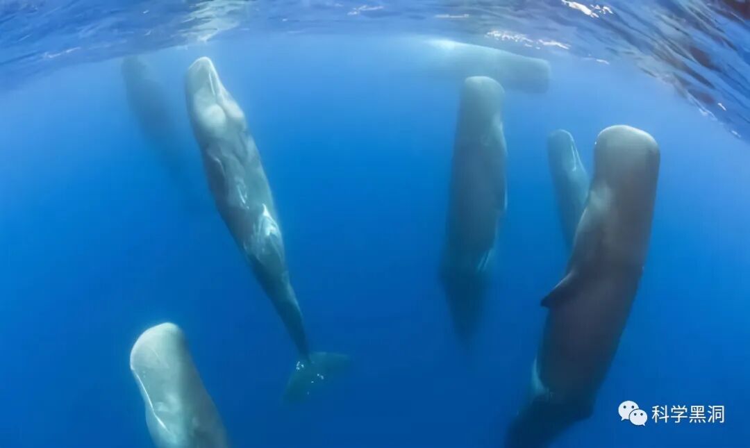 鲸鱼是海洋哺乳动物,主要分为两大类:须鲸和齿鲸。我们经常看到的各种海豚江豚之类的动物,还有辨识度很高的虎鲸,体型巨大的抹香鲸等,它们都是齿鲸的一种。而像蓝鲸、小须鲸、座头鲸等这些体型巨大的鲸鱼,它们都是须鲸,这两类鲸鱼它们的进食方式有着本质的区别。下图中就是喜欢竖着睡觉的抹香鲸,像是在做什么仪式一样,看起来比较诡异。