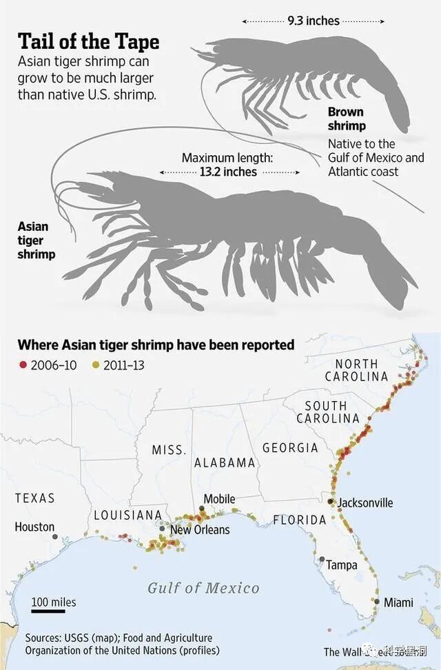 作为外来入侵物种,亚洲虎虾在新的环境里自身生长繁殖没了限制,同时美国人不太喜欢吃,几乎就是不存在天敌了。
