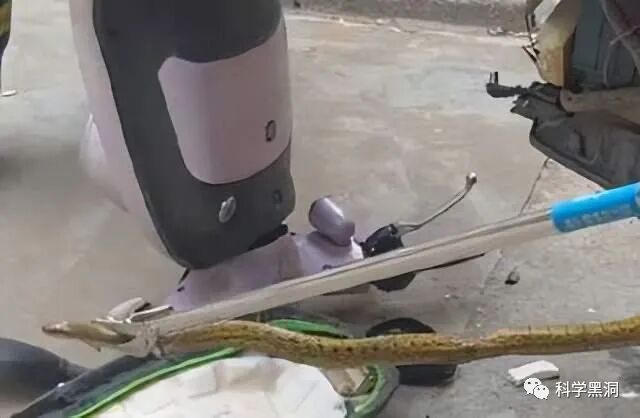 其中一名消防队员想出一个办法,找了一瓶白酒,顺着电动车的缝隙就直接倒了进去,死马当活马医,很快大蛇从电动车内爬了出来,通过专家辨认这是一条不到两米长的王锦蛇,也就是我们常听说的菜花蛇。
