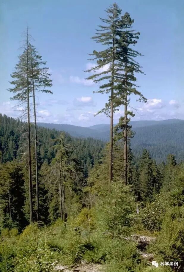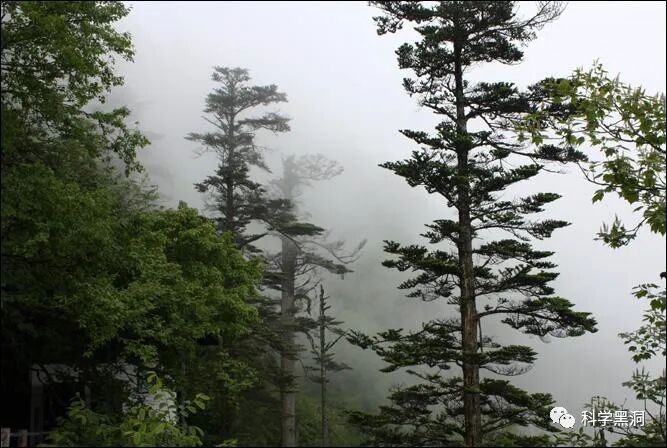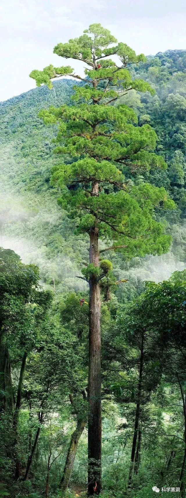 图片中最中间的便为目前已知的中国最高树木-云南黄果冷杉,高度在83.2米胸径207cm。