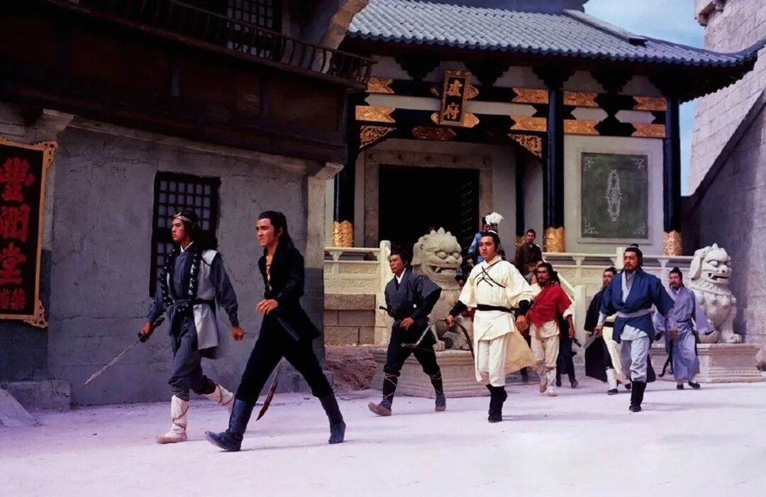 【张彻电影中的江湖角色经常是赤裸上身的,而姜大卫是极少数有衣服穿的主角。】