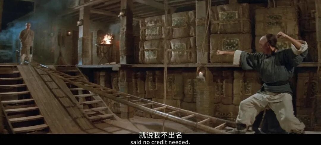 所以,最后在码头仓库和铁布衫严振东的竹梯决战,除了近景和特写镜头,李连杰需要露脸摆摆造型,其他真正的打戏都是替身完成的。